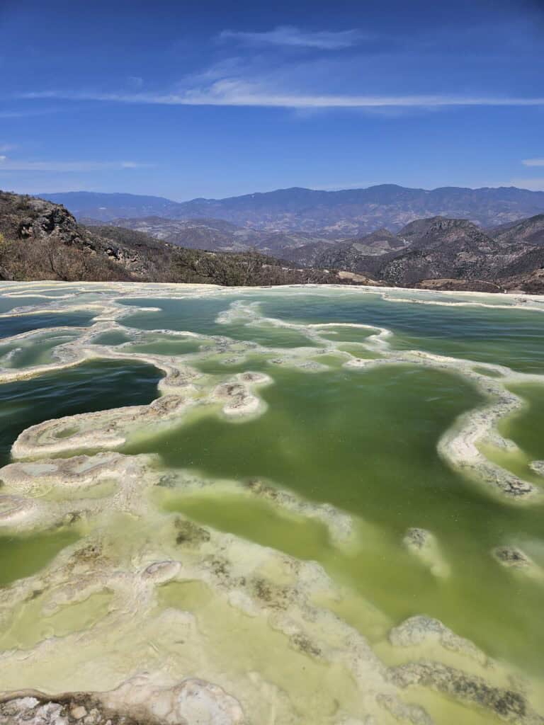 When you’re ready for a nature break, Oaxaca delivers. Hierve el Agua, is one of the most beautiful natural wonders I’ve ever visited. The name means boiled water, which is ironic since the water is extremely cold.